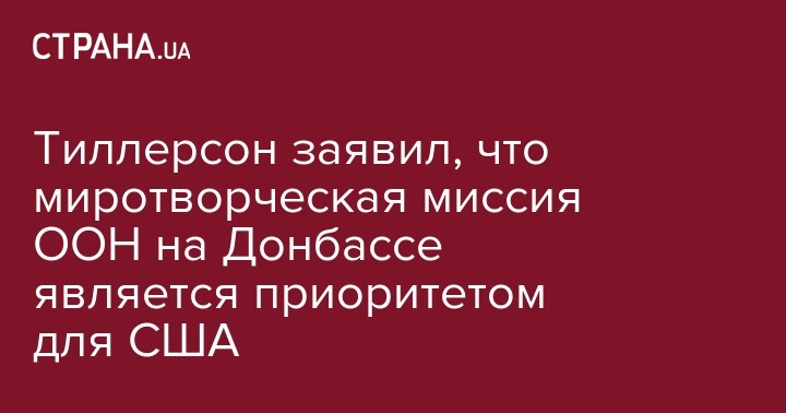 Госсекретарь Соединенных Штатов Америки Рекс Тиллерсон заявил, что приоритетом в решении конфликта на Донбассе для США является достижение согласия относительно отправления туда миротворческой миссии ООН.
