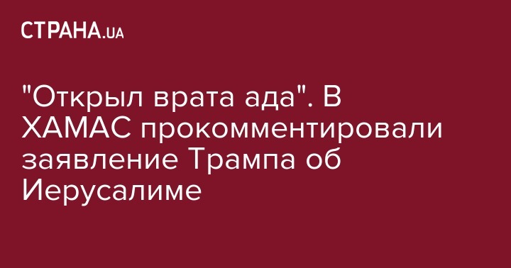 Палестинское исламистское движение ХАМАС заявило, что  решение президента США Дональда Трампа признать Иерусалим столицей Израиля и переместить туда американское посольство "открывает врата ада". Об этом сообщает The Independent.