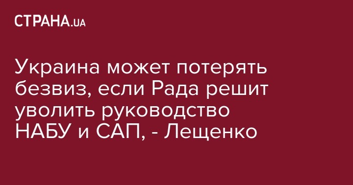 Украина может потерять безвиз, если Рада решит уволить руководство НАБУ и САП, - Лещенко