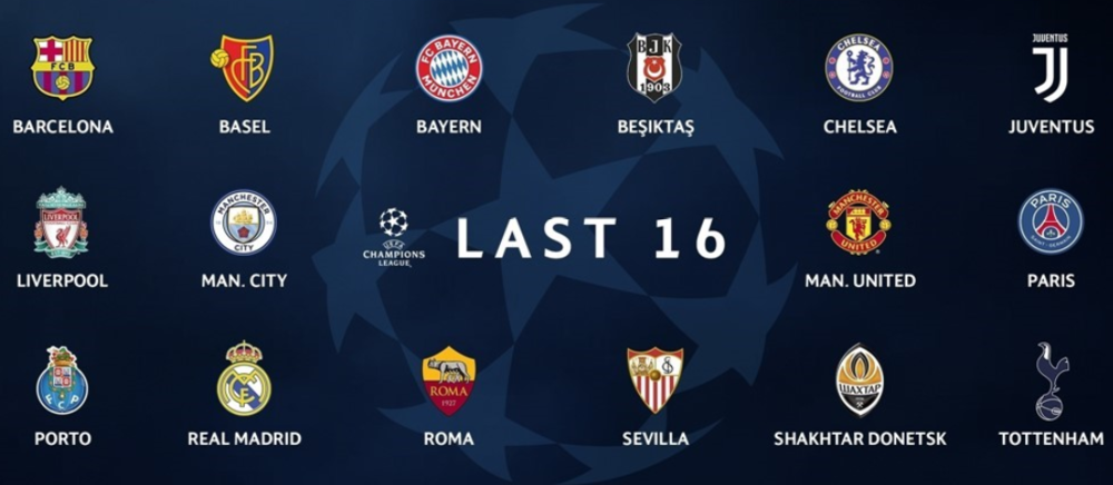 Первое место в группе: "Манчестер Юнайтед" (ENG), "Пари Сен-Жермен" (FRA), "Рома" (ITA), "Барселона" (ESP), "Ливерпуль" (ENG), "Манчестер Сити" (ENG), "Бешикташ" (TUR), "Тоттенхэм" (ENG)