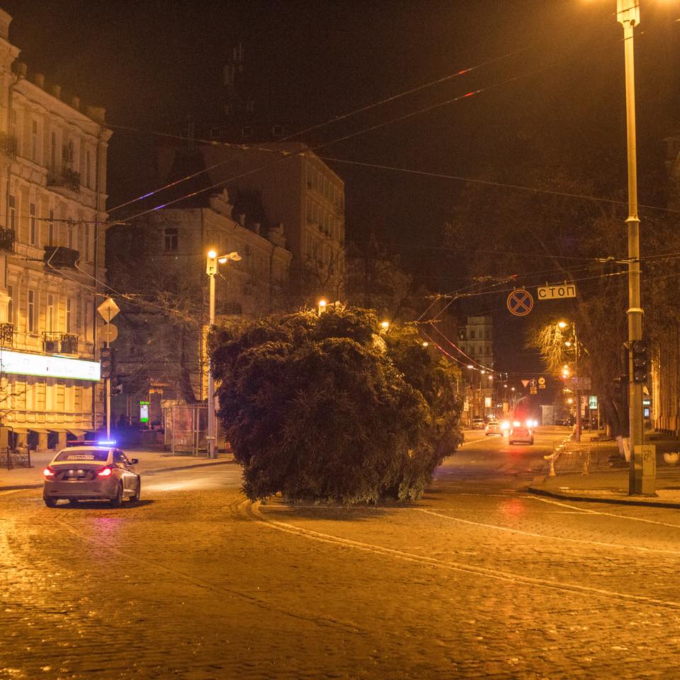 Шел снег, а машина с деревом занимала две с половиной полосы дороги. Машина с елкой прибыла в Киев только в ночь на 6 декабря.