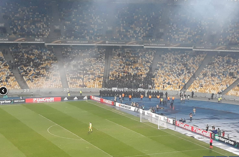 Ультрас "Динамо" во время матча киевлян с "Партизаном" устроили беспорядки, передает УНН.