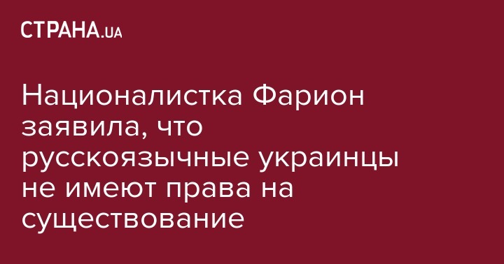 "Мне абсолютно безразлично русскоязычное население. Потому что кто это? Прошу показать мне такую юридическую категорию. Где в Конституции Украины написано, что такое имеет право на существование? Это выдумка, которая прозвучала в конце 90-х годов, кажется, в 96-м или 98-м, от, по-моему, тогдашнего министра обороны России. Они тогда очень хорошо поняли, что теряют Украину как своего сателлита и что можно держать Украину на этом поводке, который называется "русскоязычное население". И они выдумали этот термин абсолютно абсурдный, он не соответствует сути, потому что нет в мире немецкоговорящих поляков или немецкоговорящих чехов. Русскоязычность в Украине - это клеймо оккупанта, это самый лучший трофей Путина. Это символ поражения украинца перед россиянином или, извините, московитом – так намного лучше их называть", = сказала Фарион.