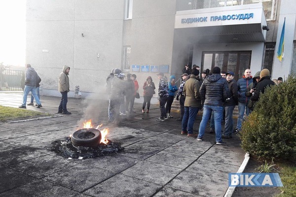 Утром 8 декабря в Черкассах несколько десятков активистов пикетировали Дом правосудия. Они подожгли шины во дворе и завязали цепью ворота, перекрыв выход, передает vikka.ua.