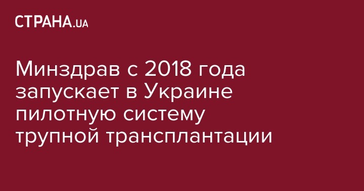 Минздрав с 2018 года запускает в Украине пилотную систему трупной трансплантации