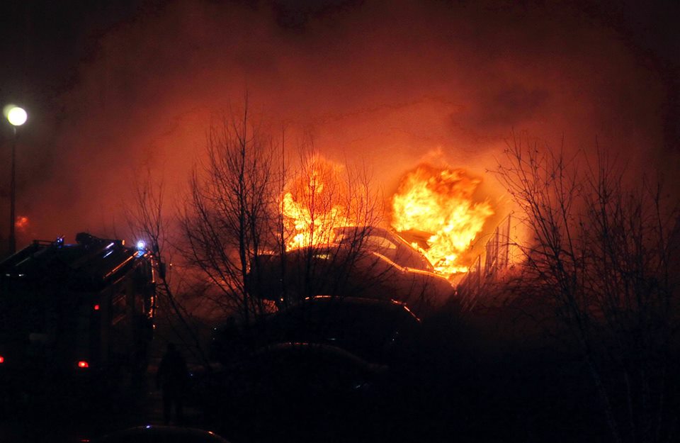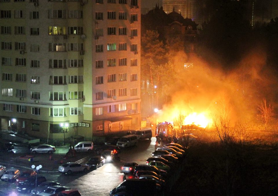 Сегодня ночью в Броварах под Киевом неизвестные подожгли припаркованные во дворе жилого дома машины, закидав их бутылками с "коктейлями Молотова".