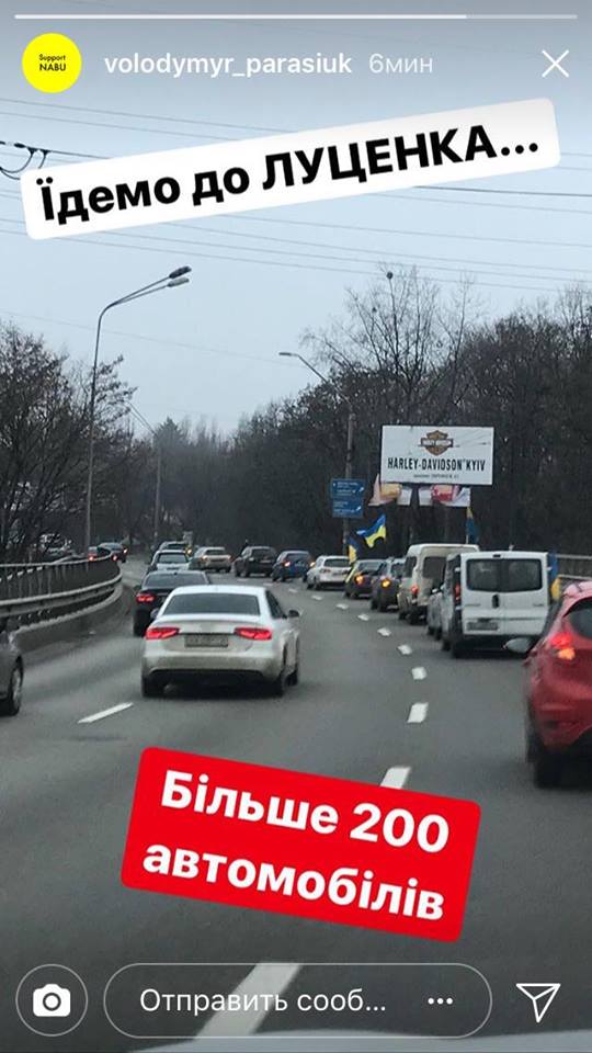 Более 200 автомобилей, по словам народного депутата Украины Владимира Парасюка, едут к домой к Юрию Луценко.