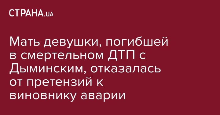 Мать девушки, погибшей в смертельном ДТП с Дыминским, отказалась от претензий к виновнику аварии