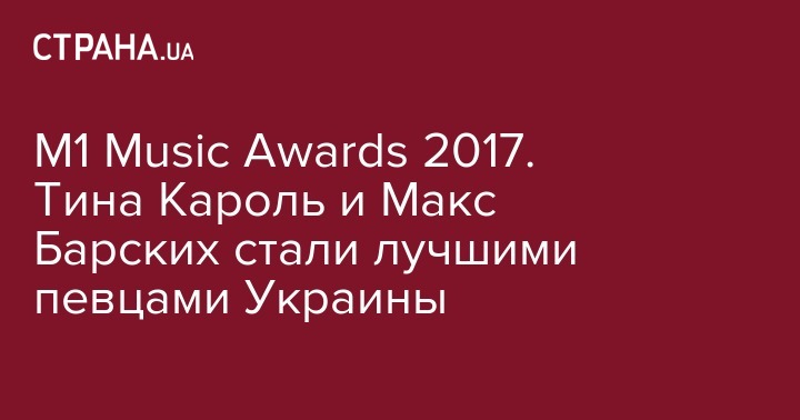 M1 Music Awards 2017. Тина Кароль и Макс Барских стали лучшими певцами Украины