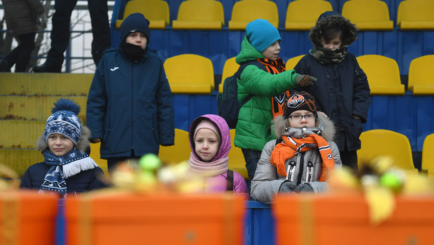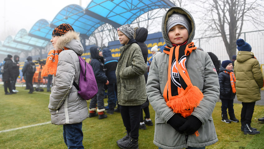 Около 50 детей из Донецкой и Луганской областей приехали посмотреть, как "горняки" готовятся к завершающему матчу года с "Зарей", а заодно пожелать команде победы в поединке.