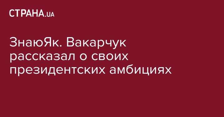 ЗнаюЯк. Вакарчук рассказал о своих президентских амбициях