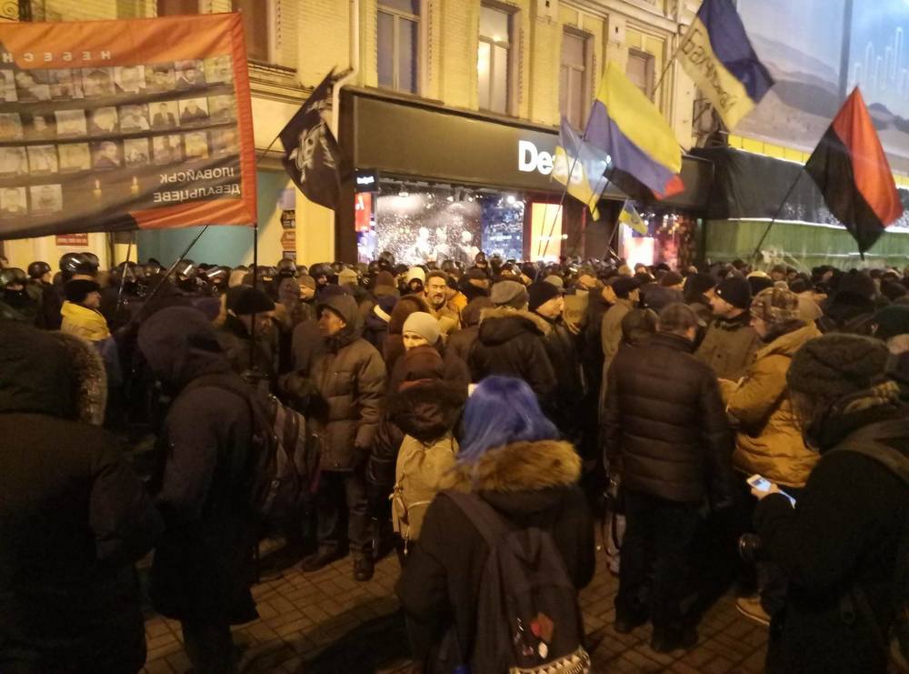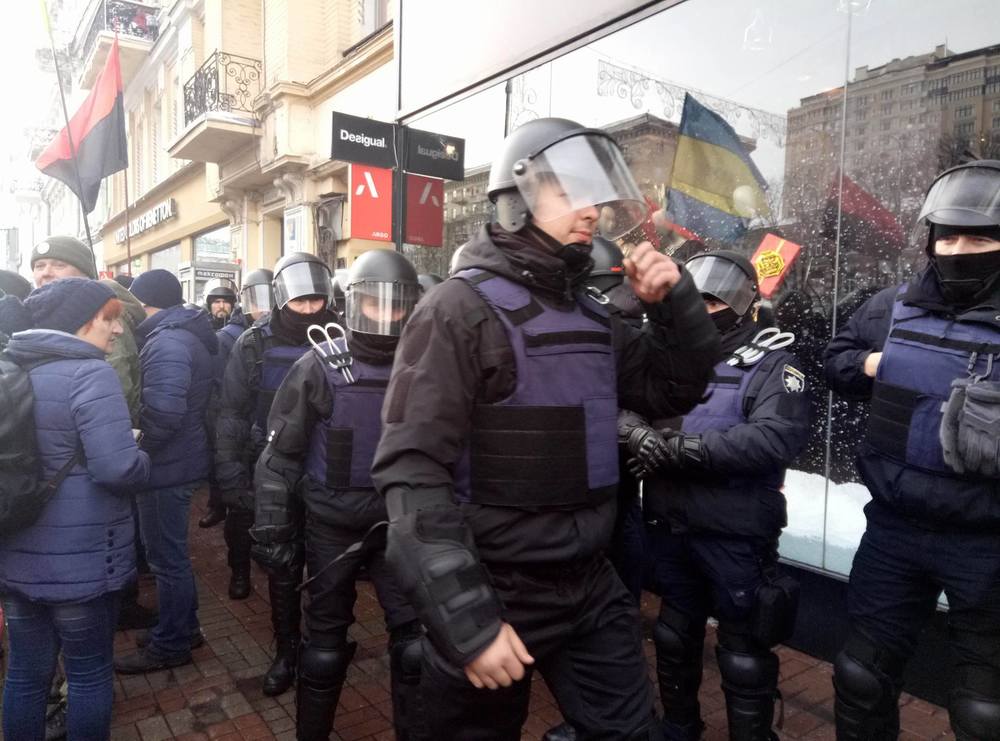 Для прохода Саакашвили по Крещатику дорогу на время перекрыли. Всего на Крещатике находилось около тысячи сторонников Михо.