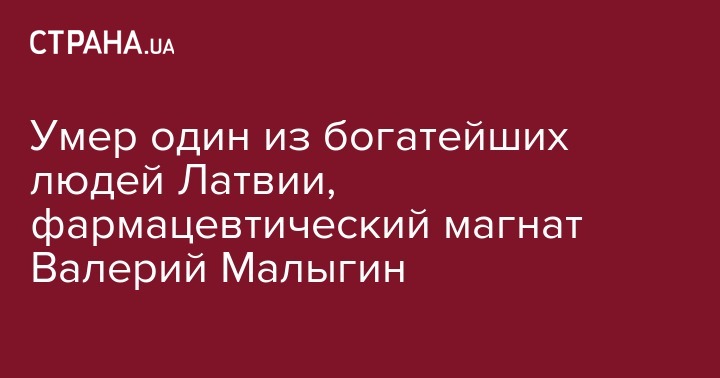 В Юрмале на 53-ом году жизни умер один из богатейших людей Латвии, совладелец и руководитель фармацевтического предприятия Olainfarm Валерий Малыгин. Об этом сообщает агентство Delfi.