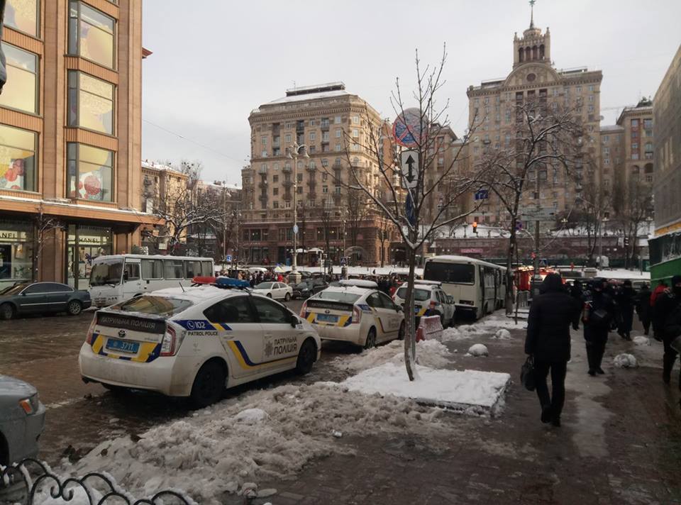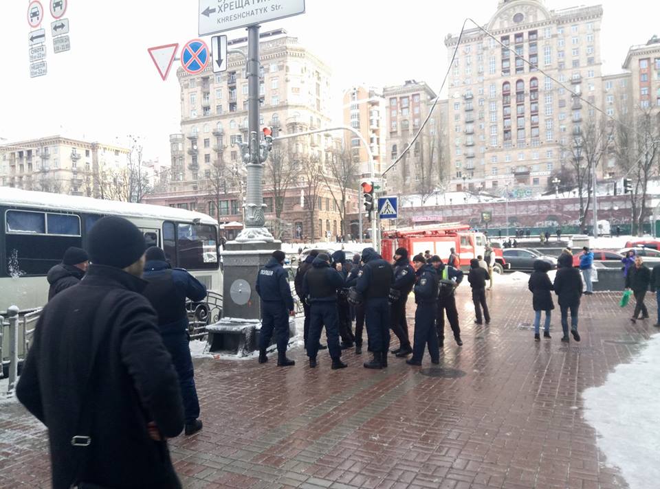 Под судом куча народа, на углу возле Цума дежурит полиция и пожарные Фото: Страна.ua