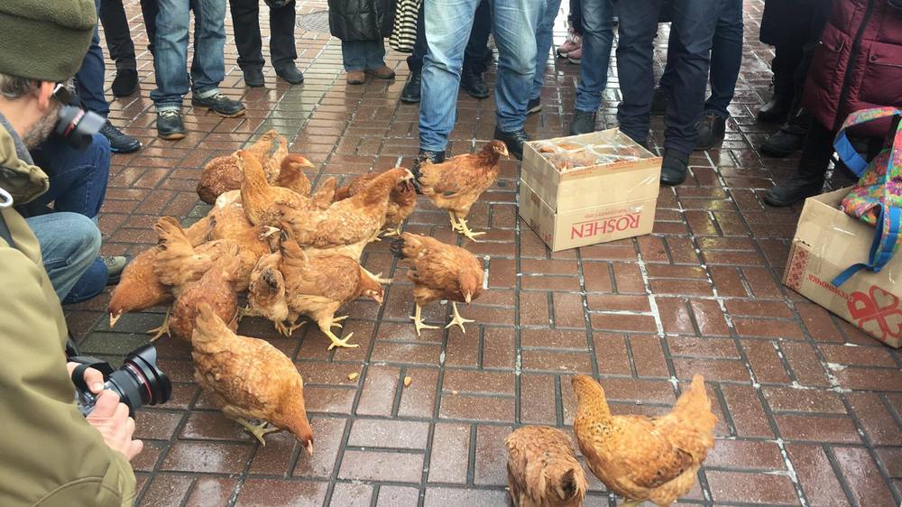 Курицы и маски Януковича. Что происходит под судом, где с минуты на минуту начнется заседание по Саакашвили