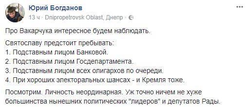 "Про Вакарчука интересное будем наблюдать. Святославу предстоит пребывать: