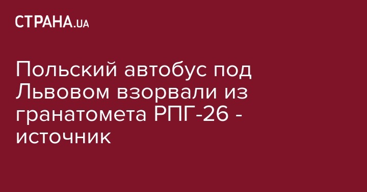 Подрыв польского туристического автобуса в селе Сокольники Львовской области осуществили из гранатомета РПГ-26. Об этом сообщает "Укринформ" со ссылкой на источник в полиции.