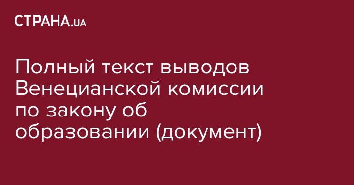 Полный текст выводов Венецианской комиссии по закону об образовании (документ)