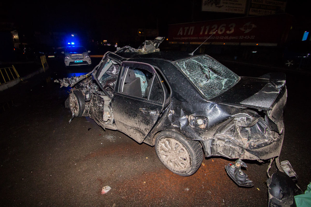 В Днепре произошло жуткое дорожно-транспортное происшествие, в результате которого столкнулась легковушка и грузовик.