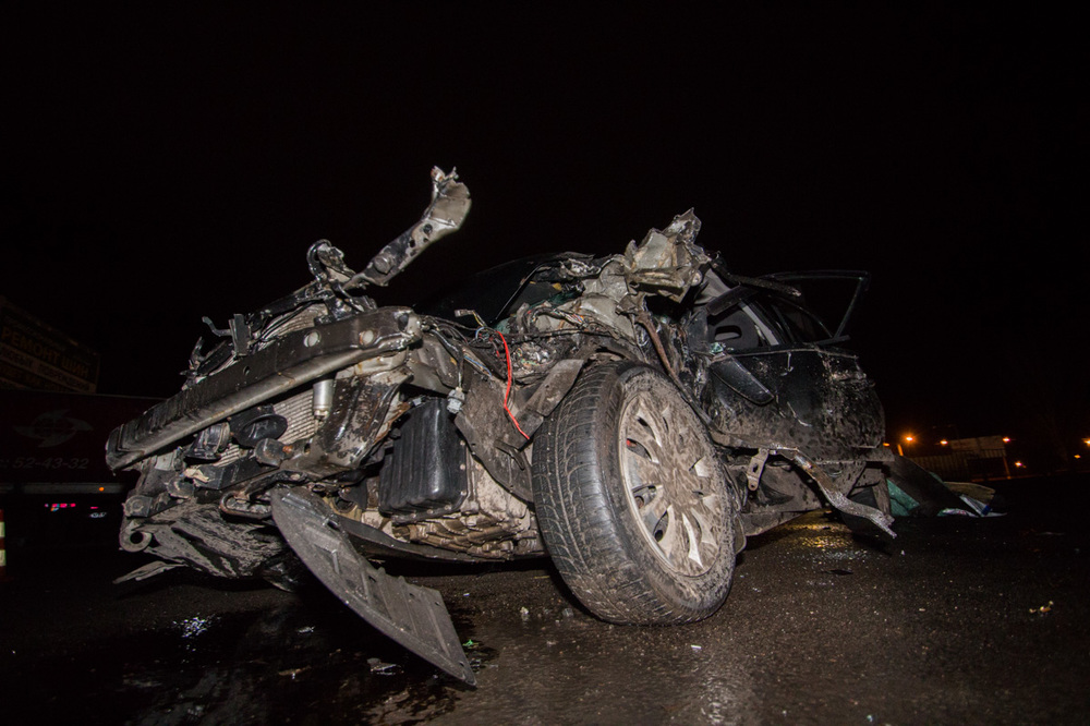В Днепре КамАЗ вдребезги разнес не уступивший дорогу Lancer. Фото