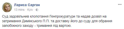 Суд удовлетворил ходатайство Генпрокуратуры и дал разрешение на задержание Петра Дыминского по делу о смертельном ДТП под Львовом, и доставку его в суд для избрания меры пресечения. Об этом написала пресс-секретарь генпрокурора Лариса Сарган на своей странице в Fаcebook.