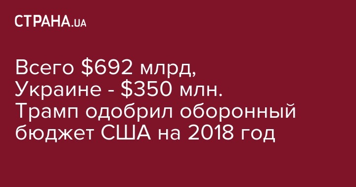 Всего $692 млрд, Украине - $350 млн. Трамп одобрил оборонный бюджет США на 2018 год