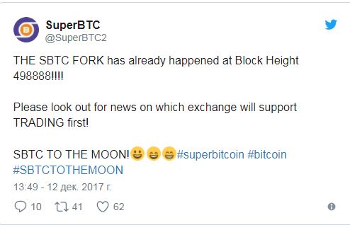 Сегодня, 12 декабря в сети биткоин состоялся очередной хардфорк (изменение протокола) - Super Bitcoin (SBTC). Об этом сообщается в Twitter Супербиткоина.