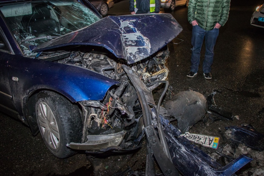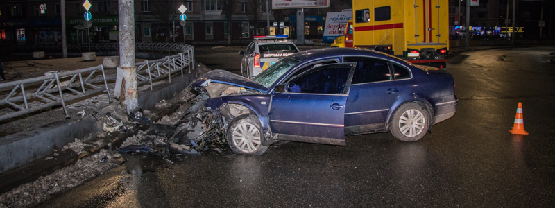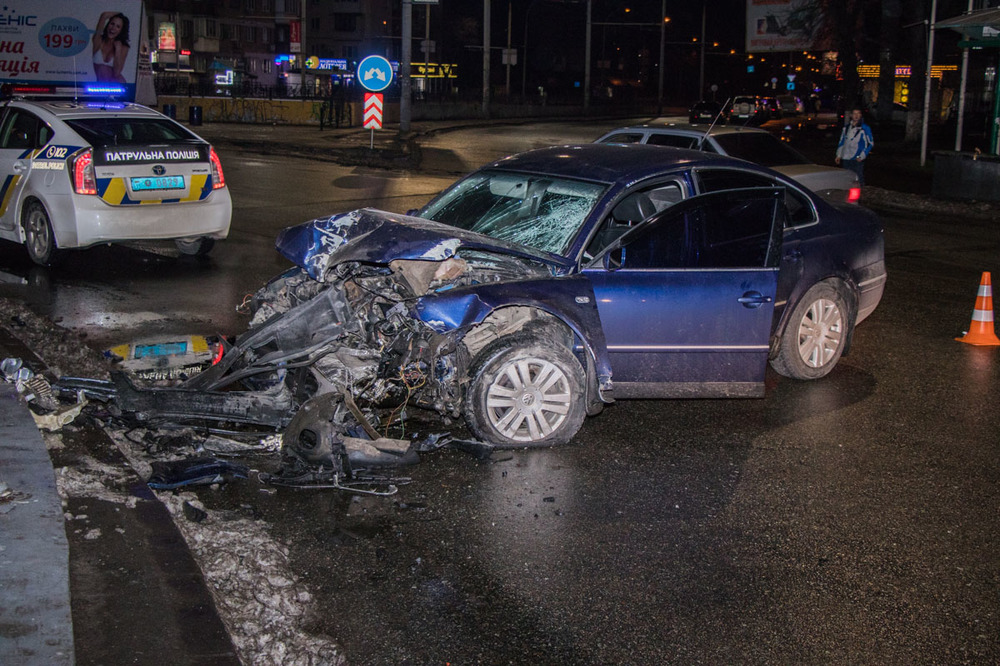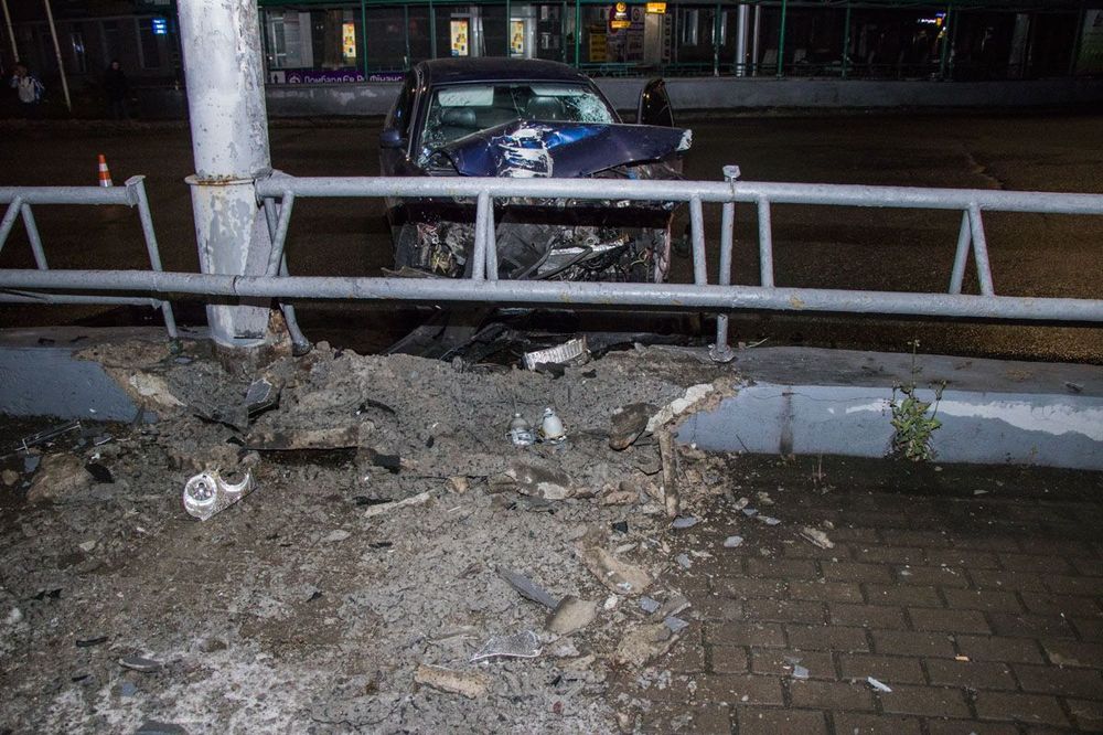 В Киеве сегодня ночью, 13 декабря, автомобиль Volkswagen влетел в железо-бетонное ограждение на Севастопольской площади. Об этом Информатор сообщает с места аварии.