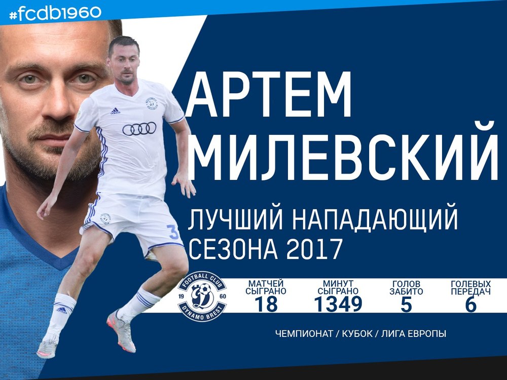 В 15 матчах чемпионата Беларуси Артем Милевский забил 5 голов и сделал 5 ассистов. В чемпионате Беларуси Динамо из Бреста финишировало на четвертом месте, набрав 51 очко и на 17 пунктов отстав от чемпиона - БАТЭ.