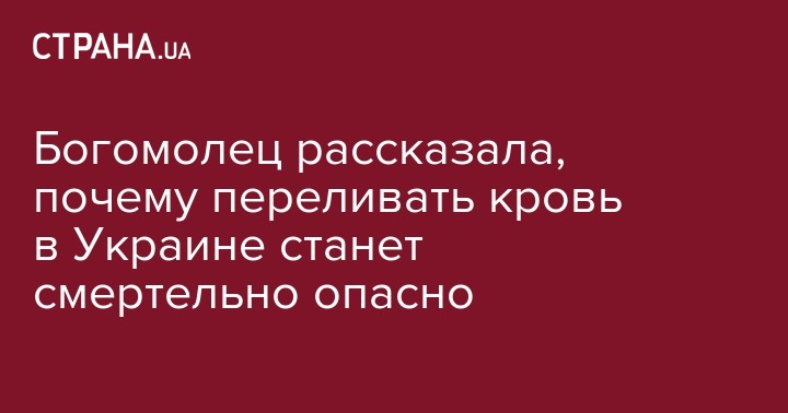 Переливание крови в Украине станет смертельно опасным. Об этом на своей странице в Facebook сообщила председатель парламентского Комитета по вопросам здравоохранения и врач Ольга Богомолец.