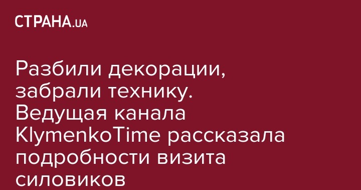 Силовики, которые вчера пришли в студию KlymenkoTime, разбили декорации, забрали технику. Также у ведущей канала Олеси Медведевой изъяли личные вещи и средства связи.