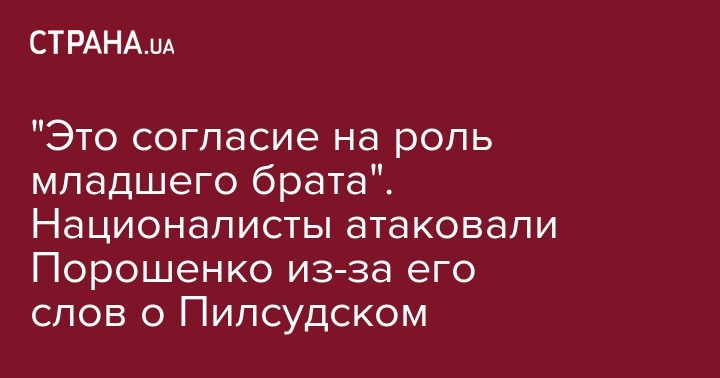 "Это согласие на роль младшего брата". Националисты атаковали Порошенко из-за его слов о Пилсудском