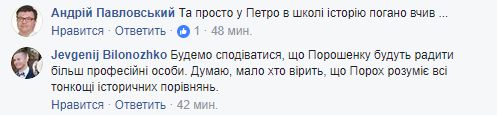 "Просто Петр плохо историю в школе учил", - предположил в комментариях у Ильенко нардеп Андрей Павловский.