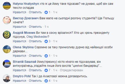 Эти слова вызвали гнев националистически настроенных блогеров. Они напомнили Порошенко, что Пилсудский отобрал Западную Украину и проводил там репрессии украинского населения.