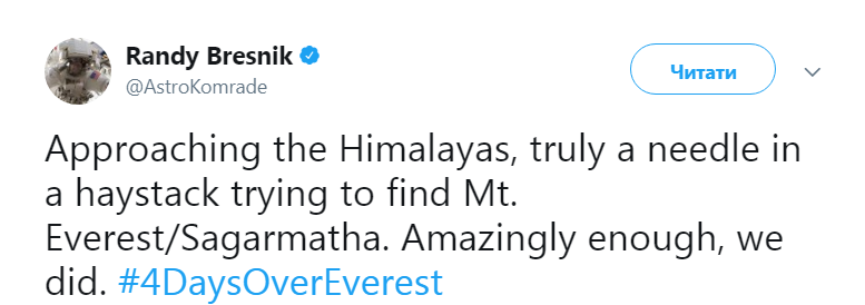"Приближаемся к Гималаям, действительно как иголку в стоге сена, пытаемся найти Сагарматху. Довольно удивительно, что у нас получилось", - написал он.