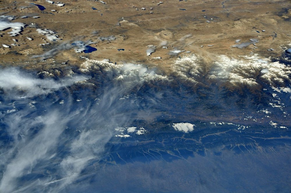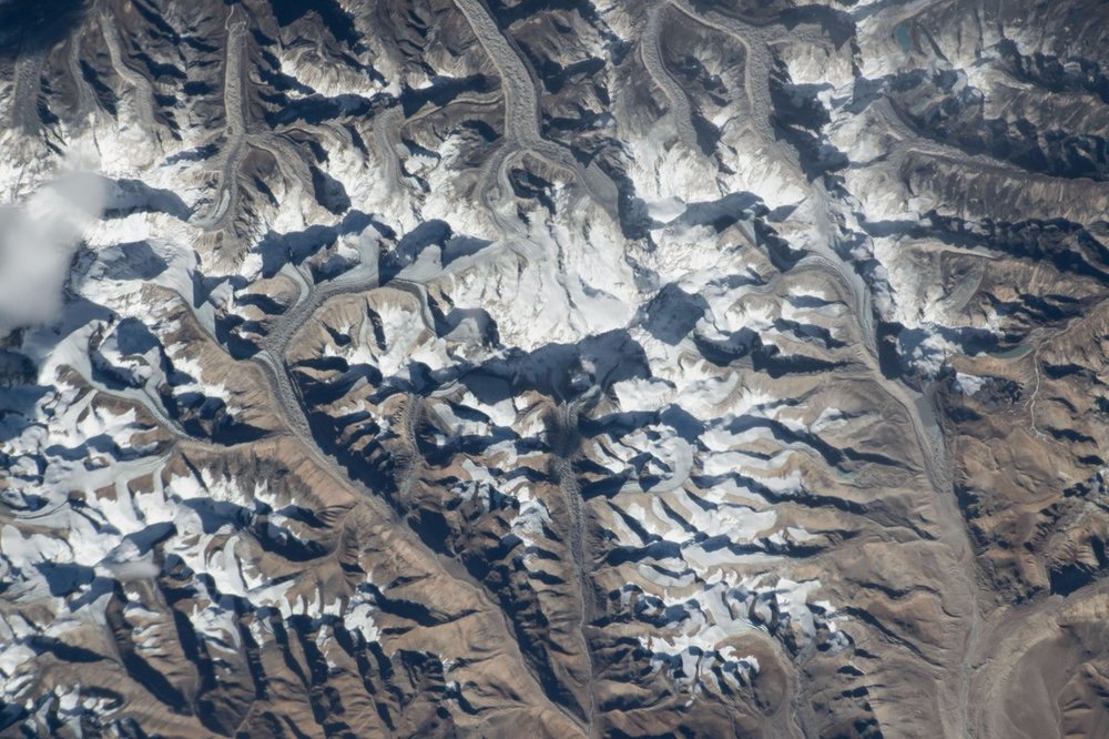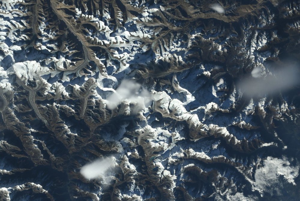 Астронавт NASA Рэндольф Брезник опубликовал снимки горной гряды Гималаев и самой высокой вершины мира - Эвереста, который известен также, как Джомолунгма или Сагарматха.