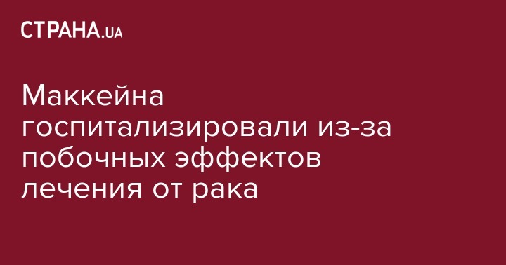 Американский сенатор Джон Маккейн госпитализирован из-за побочных эффектов лечения онкологии. Об этом сообщается на его официальном сайте.
