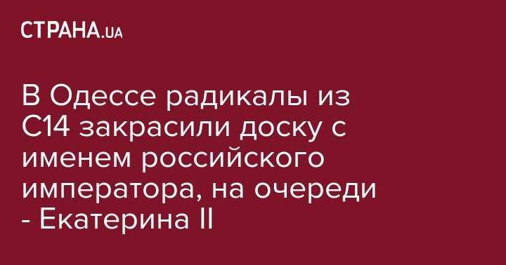 В Одессе радикалы из С14 закрасили доску с именем российского императора, на очереди - Екатерина II