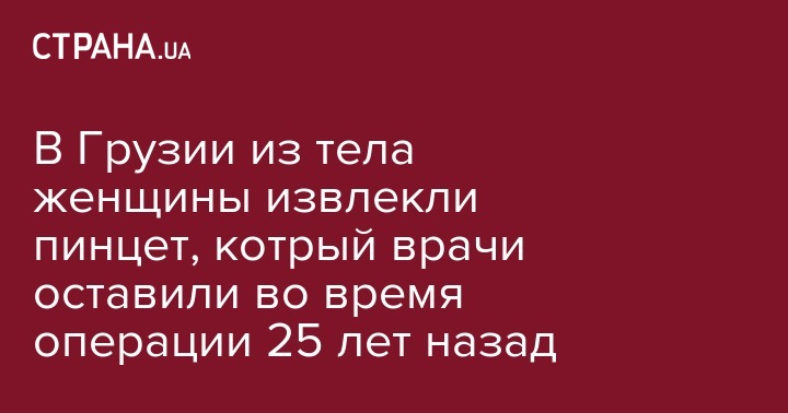 В Грузии врачи нашли в теле женщины пинцет, который их коллеги оставили во время операции 25 лет назад. Об этом сообщает "Интерфакс".
