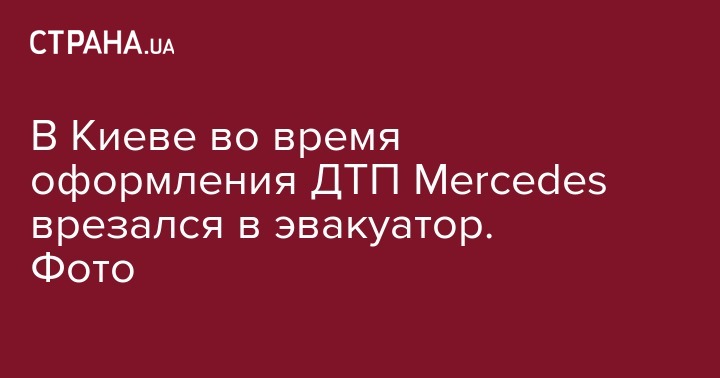 В Киеве во время оформления ДТП Mercedes врезался в эвакуатор. Фото