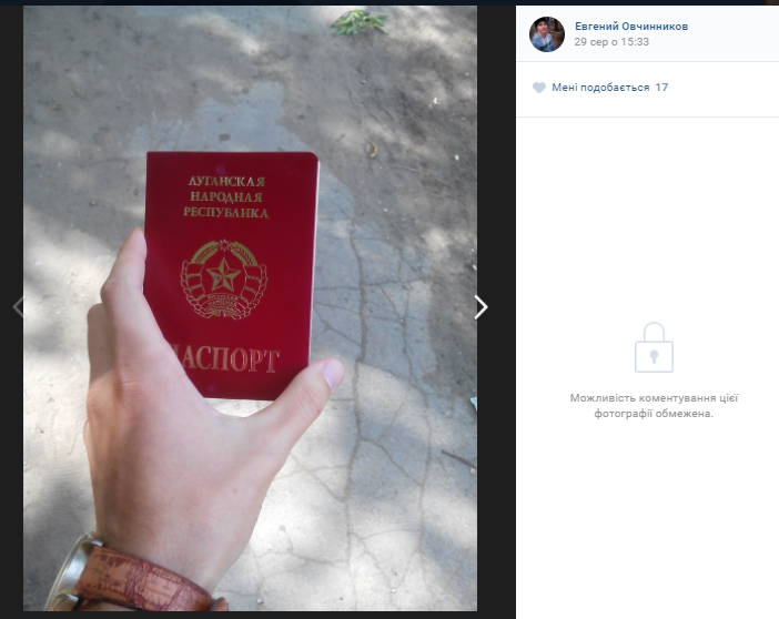 Добавим, что в социальной сети Вконтакте один из экс-курсантов Евгений Овчинников хвастался паспортом так называемой "ЛНР".