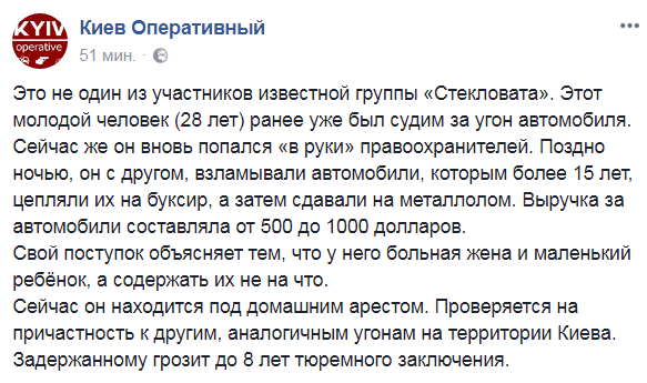 Сейчас он находится под домашним арестом. Проверяется на причастность к другим, аналогичным угонам на территории Киева.