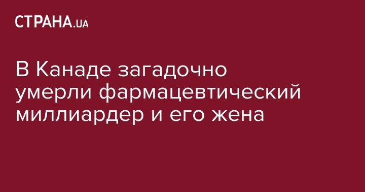 В Канаде загадочно умерли фармацевтический миллиардер и его жена