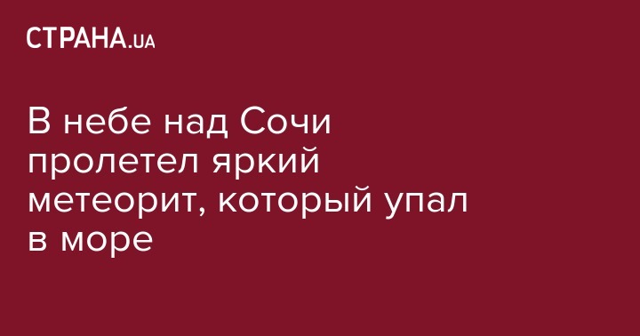 В пятницу в соцсетях стали появляться сообщения очевидцев, которые видели вечером в небе над Адлерским районом Сочи яркий объект, упавший затем в море. Падение, по их словам, сопровождалось громким хлопком. Позднее начали появляться неподтвержденные видеозаписи. В МЧС опровергли информацию о падении метеорита, сообщив, что таких заявок в экстренные службы не поступало.