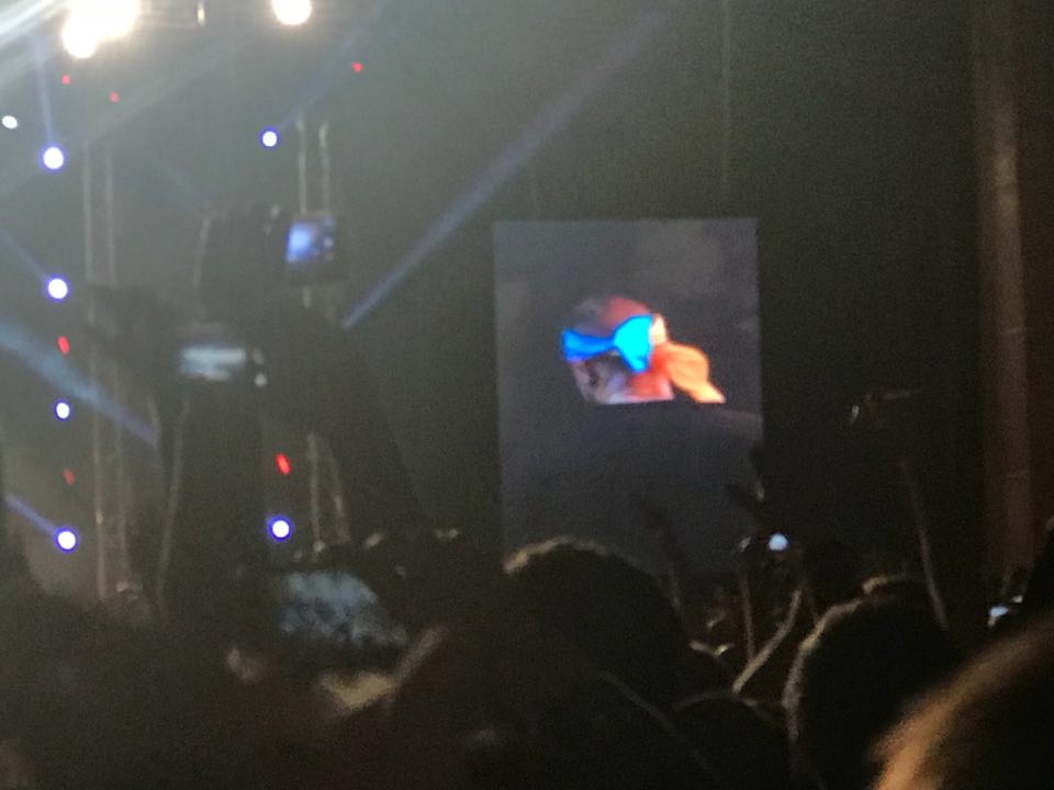 Дизастер появился в конце двухчасового концерта и во время выступления надел на голову желто-синюю повязку.