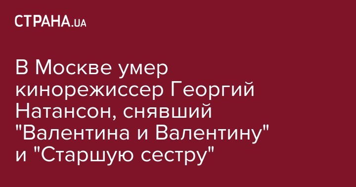 В Москве умер кинорежиссер Георгий Натансон, снявший "Валентина и Валентину" и "Старшую сестру"
