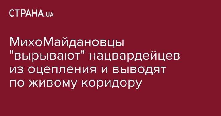 Затем майдановцы начали "вырывать" нацвардейцев из оцепления и выводить через живой коридор. Попытки их избить пресекаются.