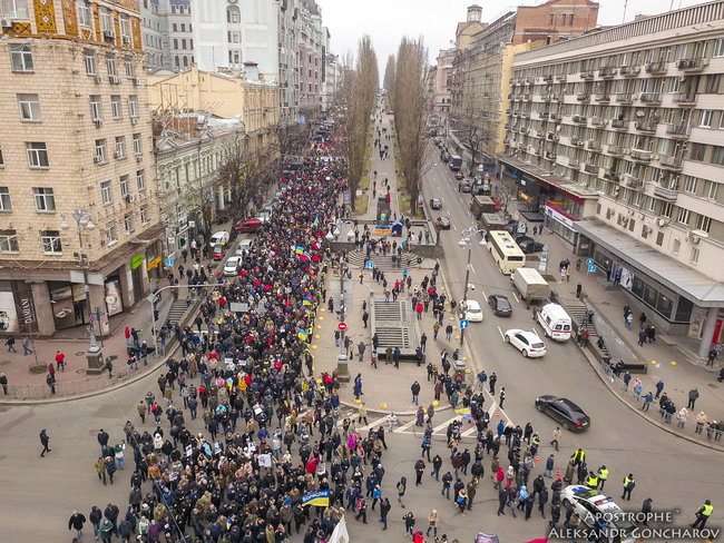 В Киеве "Марш за импичмент" сторонников Михаила Саакашвили сняли при помощи дрона. Об этом сообщает "Апостроф".