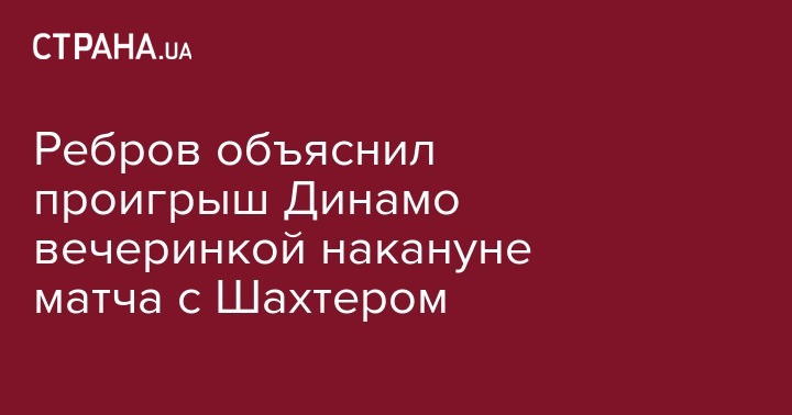 Главный тренер "Динамо" Сергей Ребров сообщил, что футболисты праздновали победу над "Ворсклой" накануне матча и это могло помещать им обыграть "Шахтер".