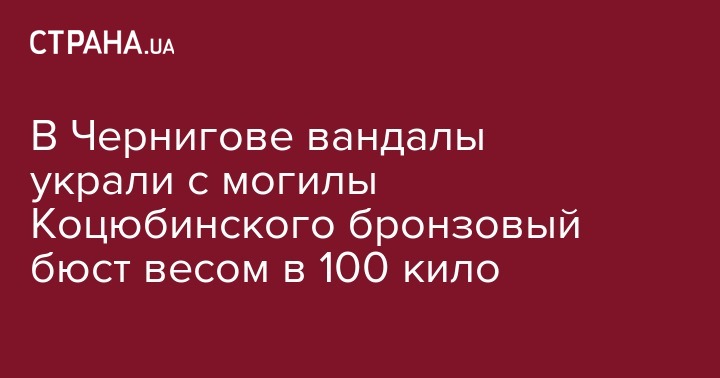 В Чернигове полиция открыла уголовное производство по ч. 1 ст. 297 УК (надругательство над могилой) по факту похищения бюста классика украинской литературы Михаила Коцюбинского с его могилы.
